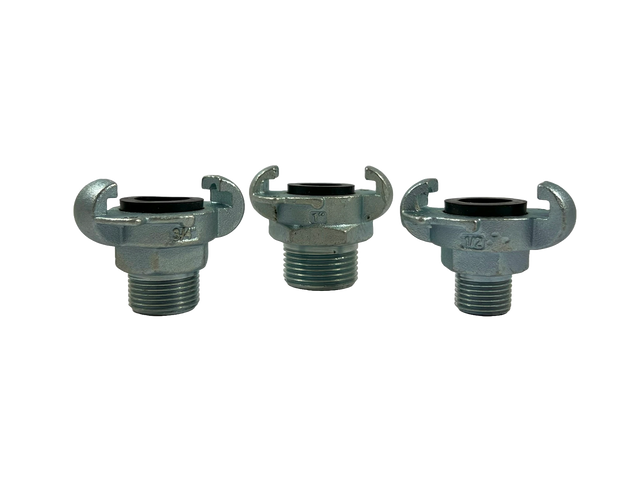 Die Reemster KAG- Pressluftkupplung ist eine Klauenkupplung mit Außengewinde und mit Sicherungslöchern gegen unbeabsichtigtes Herausdrehen ausgestattet. Sie entspricht der DIN 3489 und ist aus verzinktem Gusseisen gefertigt. Inklusive Gummidichtung (NBR) für eine gute Abdichtung. Maximaler Betriebsdruck 10 bar.