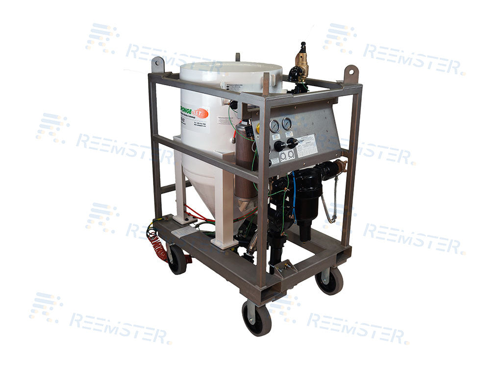 - Das einstellbare, pneumatisch angetriebene Schneckendosiersystem gewährleistet einen optimalen Mediendurchfluss und maximale Effizienz bei allen Strahldrücken