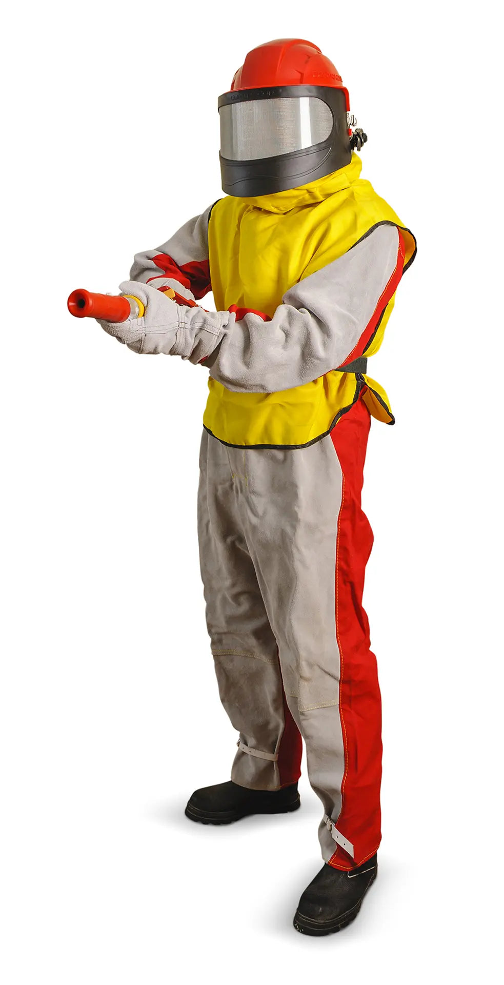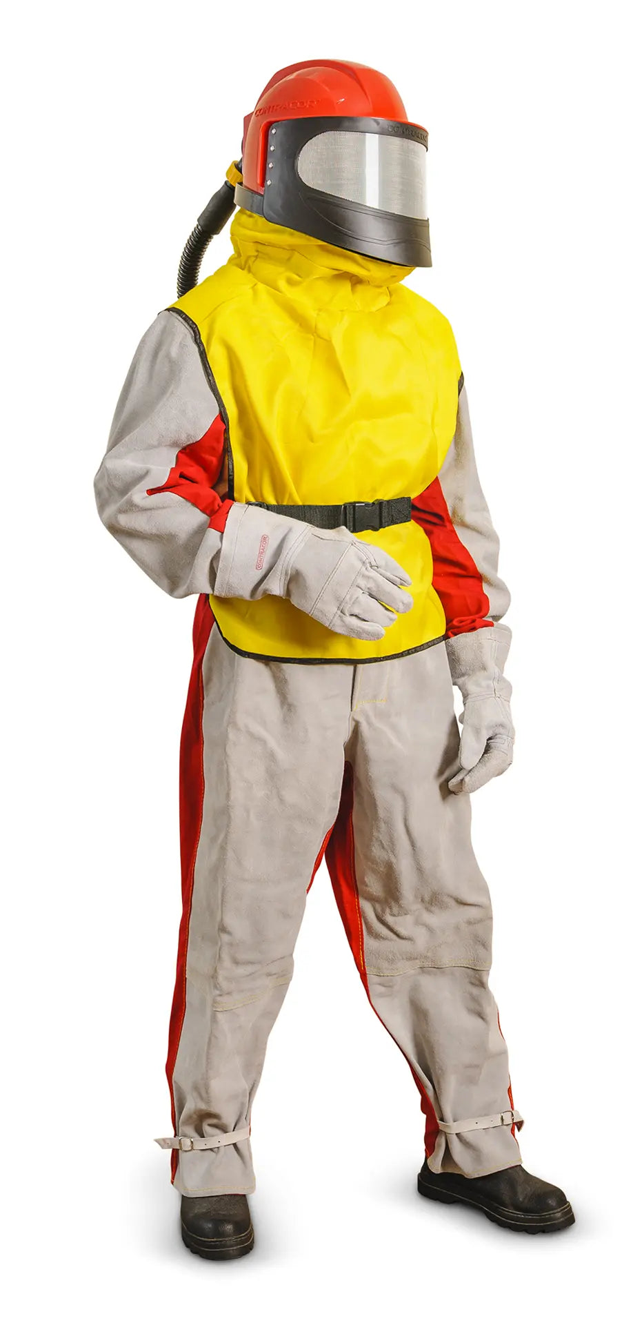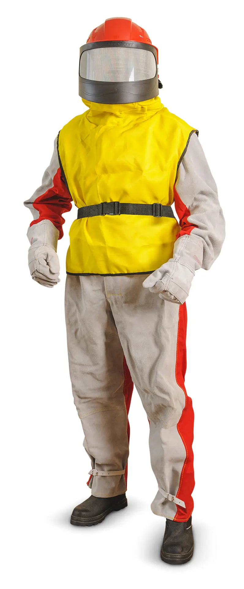 The blast helmet is more than just protection for your head! It also makes for a better working environment. The rugged shell provides durability, so you can wear it with peace of mind knowing that it will last longer than any other type of gear - even when the going gets rough. Airflow through the visor prevents haze or fatigue while maximizing productivity. The top of the hood protects against flying debris and abrasive media. Penetration of abrasive media between the lenses is prevented by an integrated, 1"-deep visor. The window can be easily closed with a slot that aligns the locking pawl and tab. The cape is attached to the bottom edge of the helmet with an adjustable buckle that ensures a snug fit and easy replacement. Two lenses and a wire mesh screen ensure good visibility and safety for the user.